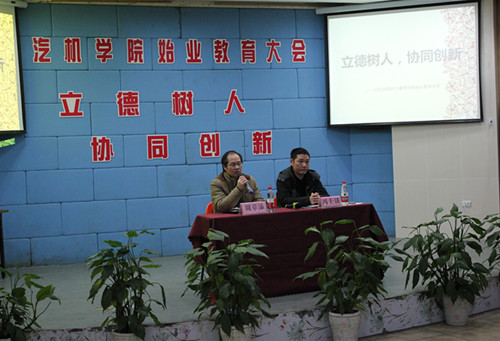 周老师首先发言,他总结了2014年汽机学院的累累硕果,并对新的学年寄予期待和要求;接着周老师总结了上个学期末同学们的考试情况,对学生中间存在的一些亟待改进的地方一一点明,希望同学们能全身心投入专业学习,在新的学期里积极参加各项专业技能大赛;并努力提高自身综合能力,养成良好的习惯。冯老师在周院长的讲话之后,就同学们关心地工学结合问题、就业问题等进行了指导和说明,并结合主题从职业生涯规划、求职就业状态等方面给同学们提出了建议和要求,提醒同学们把握好新学期的各种机会,不断提高自身的综合素质。最后,冯老师嘱咐同学们对自身安全问题不要松懈,在新的学期里能够安全、快乐、充实地完成学业任务。