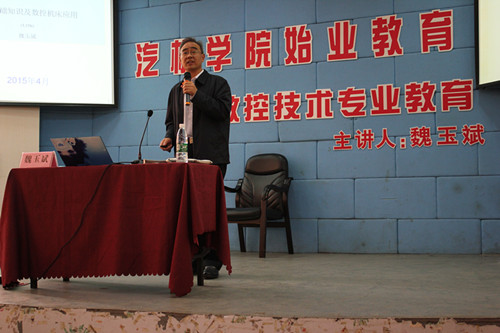 数控教研室邀请到了南方阀门制造有限公司总工魏玉斌先生,为同学们分享他的一些经验和数控专业的发展前景。魏总工给学生们讲述他所从事工作的阀门的行业概况、基础知识、加工工艺及数控机床应用。在他的演讲中,学生们感受到数控专业在阀体上的发展前景,更是感受到现在社会对高技术人才的急切需求。最后好几位同学都向魏玉斌先生提出了自己的疑问,魏玉斌先生很认真的全面的讲出了自己的看法和建议。