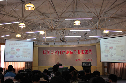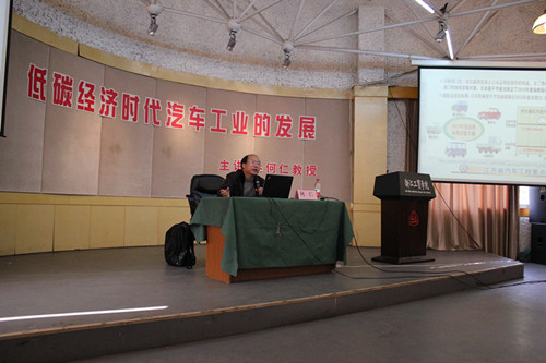 2014年12月26由汽车专业教研室组织的以“低碳经济时代汽车工业的发展”为主题,何仁教授为主讲的汽车专业讲座在多功能厅举行。何教授来自江苏大学,具有博导身份,是江苏省汽车工程重点实验室主任,享受国务院政府特殊津贴。