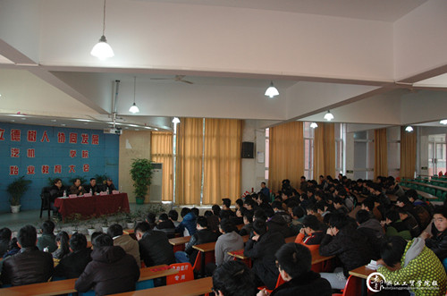 最后,学院书记冯士活老师结合时间的流逝,引发学生感受时间的紧迫。在简单地回顾上一学期我院学生在学习和生活中的表现后,结合社会企业对人才的需要,向同学们作了两点要求:第一,把握有限的学习时间,继续提升自己的专业技能。在具体谈到如何提升专业技能时,他强调转变学习态度、改善学习方式和拓宽自己的视野对提高学生的专业技能尤其重要。第二,抓住各种机会,积极参与各种活动,通过活动发展自己的综合能力,增长自己的综合素质。在讲到学生的综合素质时,冯书记深有感触地说,学会如何做人不仅影响着学生马上面临的就业问题,也深刻的影响着学生以后人生的成长,因此学会做人成了提升学生综合素质的重中之重。另外,冯书记还详细介绍了始业教育的具体工作内容和安排,介绍了我校在过去的一年中为学生服务的十大事项,这桩桩事件虽小,但温暖人心,也深刻反映出我校“以生为本”的人文关怀,会上,冯书记还向全院学生发出了征求,征求学生对本学年期望学校改进的意见和建议。最后,冯书记还就学生安全工作做了重要提示,要求学生对安全问题引起足够的重视。