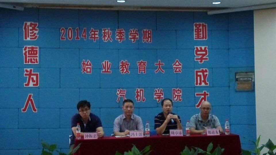 为帮助学生尽快调整假期身心状况,以积极的精神面貌投入新学期的学习和生活,9月12日,我院在阶梯教室分两场召开以“修德成人,勤学成才”为主题的始业教育大会。学院院长周章添老师、书记冯士活老师、副院长钟振忠老师,院长助理郑道友老师,各班班主任、辅导员及分院全体在校学生出席了大会。周章添院长和冯士活书记分别作了重要讲话。