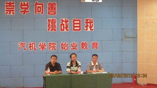 9月9日上午,汽机学院在阶梯教室召开“崇学向善 挑战自我”2012年秋季学期始业大会,出席本次会议的人员有汽机学院院长周章添老师,书记冯士活老师,院长助理戴乃昌老师,以及11级全体学生和班主任。