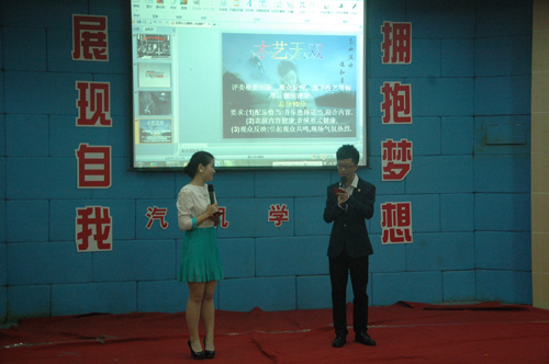 经过预赛的海选,8名选手进入本届主持人比赛的决赛。决赛主要分为自我介绍,模拟主持,复活赛和才艺展示四个环节。其中自我介绍环节中,选手们毫不怯场,使出浑身解数将各自的特长演绎出来,他们富有创意的介绍感染了评委以及现场的观众们。模拟主持环节,选手们带来了“小点说新闻”“中国军事”“鲁豫有约”“走进科学”等精彩主持。经过激烈的复活赛,六位选手顺利晋级最后的环节。在才艺展示中,选手们尽显个人才华:优美的歌声,热烈的舞蹈,搞笑的相声等才艺表演博得了评委及在场观众的一致好评,使全场掌声不断,气氛热烈。最终,来自汽销1201班的罗源同学夺得了本次主持人大赛的桂冠。