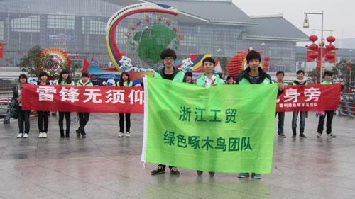 2012年03月04日早上,汽机学院志愿者们参加了在世纪广场举行的“践行雷锋精神,共建幸福温州”青年志愿者活动。淅淅沥沥的小雨,完全没有影响到大家那颗抱着为人民群众服务的心。