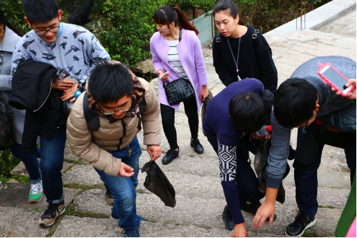 下午1时,学生们乘坐公交车到达茶山高教园区后并排着整齐的队伍步行来到大罗山下。登山前,每名入党积极分子分到一个垃圾袋,用于处置沿途的垃圾。同学们认真地清理山路上的垃圾,他们的举止也得到了路人的赞许。为了增加入党积极分子之间的认识,此次活动也增加了游戏环节。通过游戏,消除了入党积极分子之间的陌生感,使他们能更好地融入到支部这个大家庭。此次登山活动持续了3个小时,这期间同学们不怕累不怕脏,坚持走完了全程。