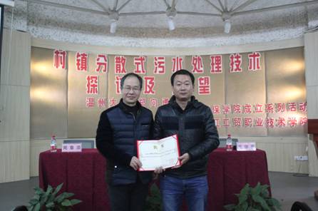 分院成立活动为两项议程。首先是嘉宾郑向勇博士,分院周章添院长,吴学亮书记,分院督导全体成员及机电教研室全体教师举行座谈会,就环保分院专业建设培养方案进行了深入细致的讨论。培养方案需立足杭钢集团公司雄厚的环保产业基础,充分发挥浙江工贸学院产教融合资源优势,结合行业发展情况,打造一支技能精湛又接地气的人才队伍。