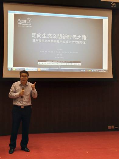 本次活动有两个主旨:一是由市决咨委、市环保局联合发起成立了温州市生态文明研究中心,研究中心主任由市环保局总工程师高永兴担任,并建立了温州市生态文明研究专家库,我院郑道友副教授入选专家库,被聘为温州市生态文明研究中心研究员。