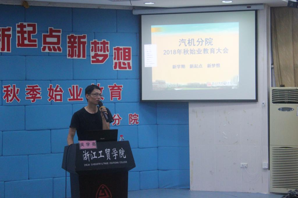 汽机分院围绕“坚持立德树人 推进内涵建设”主题,2018年9月8日晚上,分院在阶梯教室举行“新学期·新起点·新梦想”为主题的秋季始业教育,分院17级学生参加了本次大会。到场的老师有汽机分院书记吴学亮老师,副院长郑道友老师,辅导员周全老师、黄丹华老师以及各班主任。