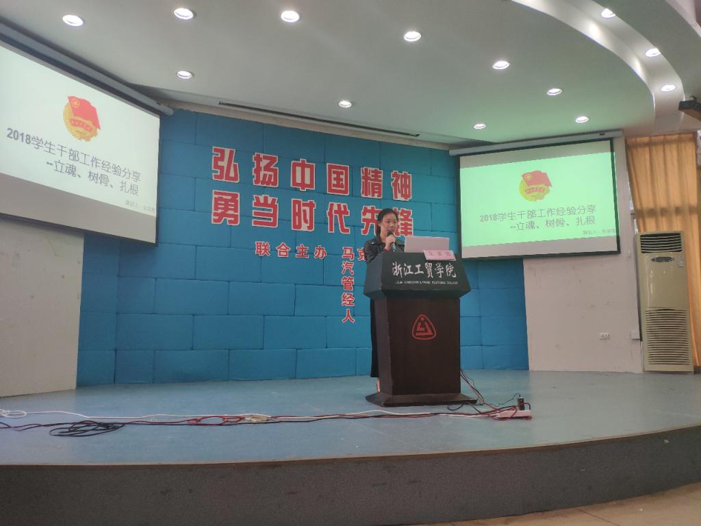 首先,邀请汽机分院书记吴学亮主讲,吴老师主要从三个方面讲解了如何坚定树立四个自信,弘扬中华传统文化。第一,大学生要认清复杂国际形势的本质,例如2017年中印边境对峙,这表明战争离我们并不遥远,以及2018年中美贸易战、南海问题、台湾问题等等。这些事情充分反映了国际形势的特殊性和复杂性。第二、大学生要坚定树立道路、理论、制度和文化四个自信,做推动树立四个自信的践行者。第三、大学生要弘扬中华优秀传统文化。吴书记提到在2018年8月21日至22日期间,全国宣传思想工作会议强调要把优秀传统文化的精神标识提炼出来、展示出来,把优秀传统文化中具有当代价值、世界意义的文化精髓提炼出来、展示出来。借此,吴书记为学生们讲解了《弟子规》的纲领部分,让干部们学习如何做人、为人、修身、处事、成就、立身等等。接下来,培训会进入第二部分,是四个分院的优秀学生干部经验介绍。如管理分院朱紫卿从立魂、树骨、扎根讲述如何管理学生会和班级;人文系柴诗怡提到要尽量多接触每一个人,培养团队意识,并抓住机会去学习和提高自己;经贸分院张丹讲述了自己在大学期间的各项经历,论述用心与付出的正比性;以及汽机分院刘鑫讲述如何处理学生会中的各种突发情况和应对措施。
