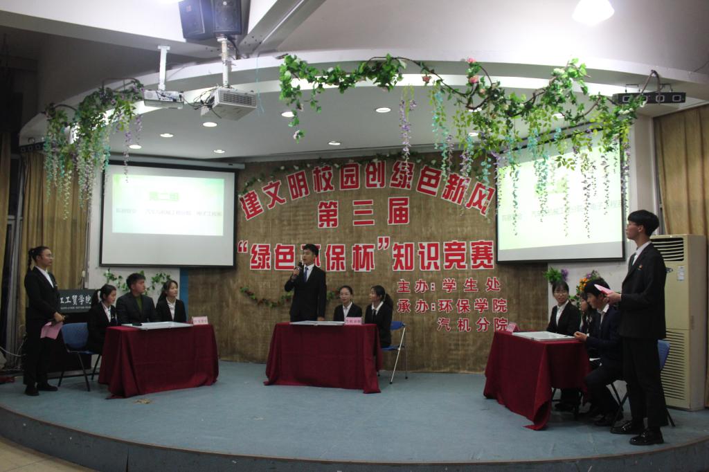 随着社会的发展,人们生活水平的提高,但是环境问题也愈发突出。而保护环境是每一个公民的责任,更是大学生的责任。因此为了提高大学生环保意识,提升大学生的环保知识水平,2018年12月18日晚上,由学生处主办,汽机分院(环保学院)承办的第三届“建文明校园,创绿色新风”绿色环保杯知识竞赛在阶梯教室拉开帷幕。