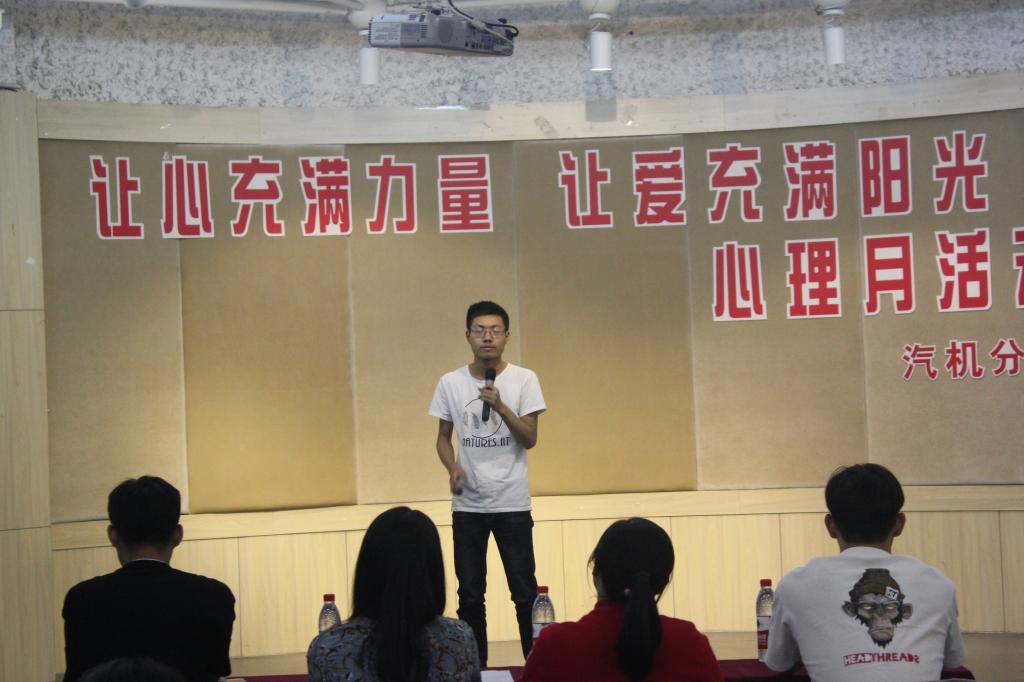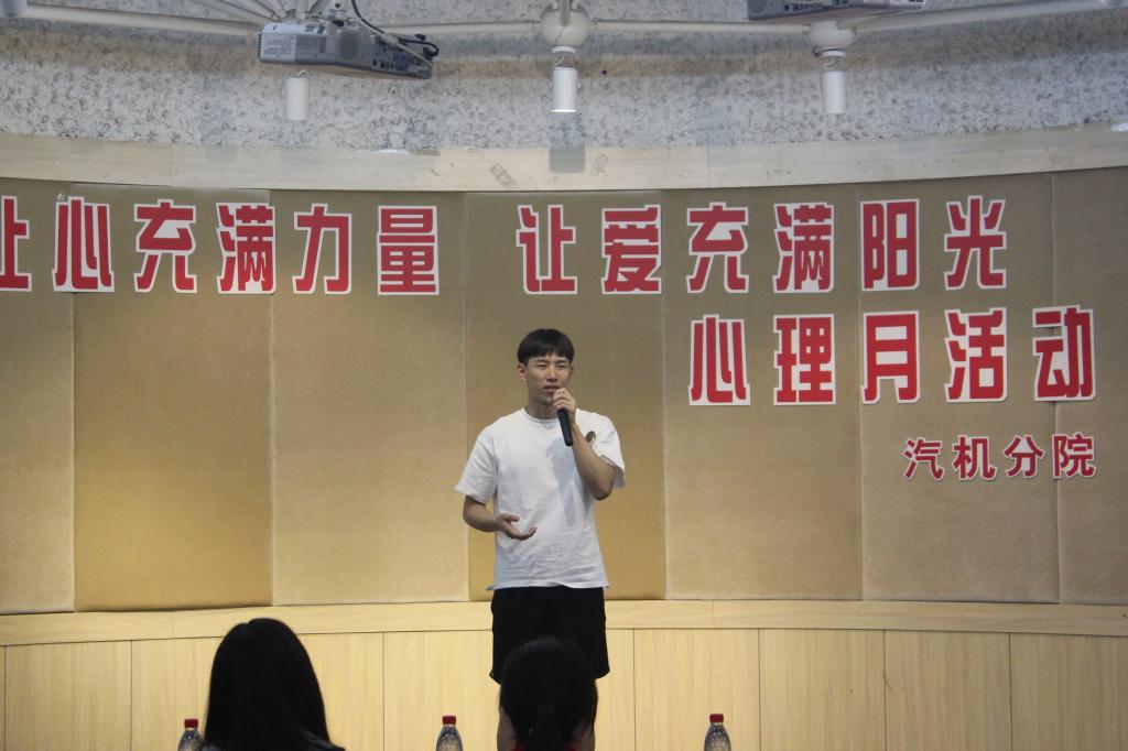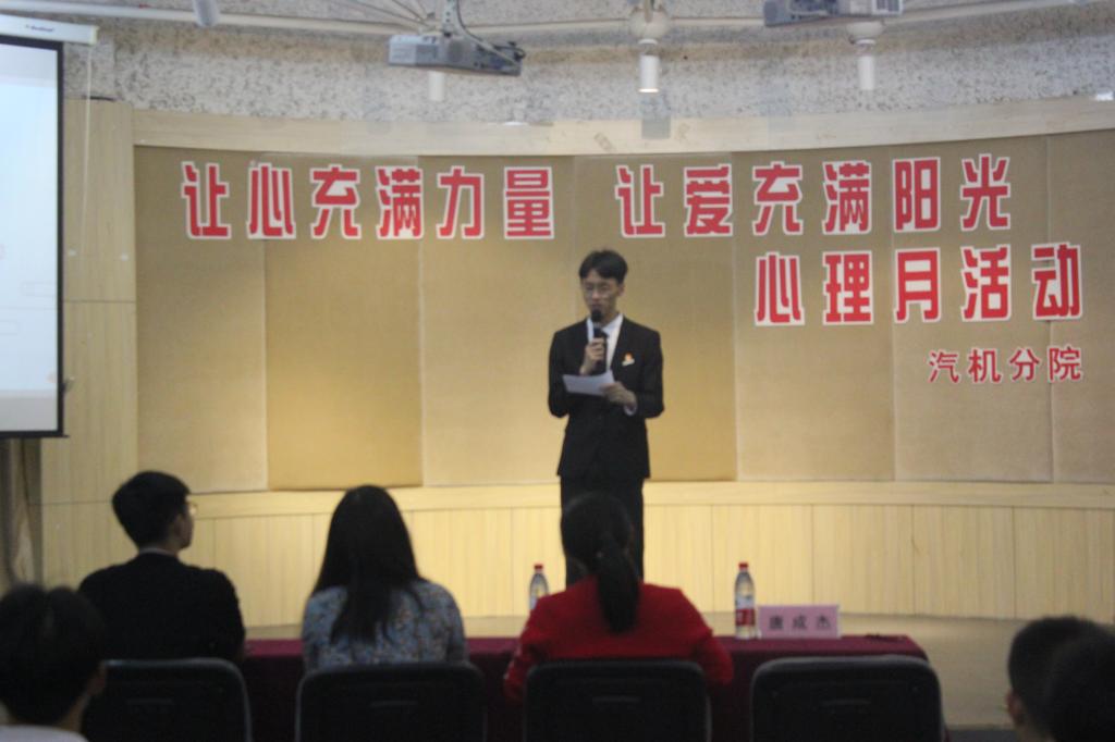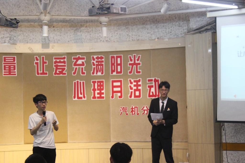 为了积极响应学校的“心理健康活动月”教育,构建和谐健康的校园文化,2019年5月22日晚上,汽车与机械工程分院团总支学生会在多功能厅举行以“让心充满力量,让爱充满阳光”为主题的心理月观影活动,分院辅导员黄丹华老师、公寓管理员衣慧子老师、分院学生参与本次活动,活动由综合办公室干事余盛淼主持。