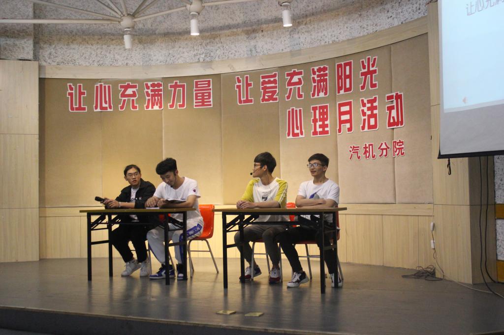 活动开头播放短片《摘星星给你》,通过动漫故事告诉大家世界很美好,世界不独你一人,总有人能给你带来星星,带来希望。大学是人生的重要阶段,而宿舍生活是大学的重要组成部分,宿舍人际关系和谐与否直接影响着大学生的心智发展和心理健康,如何与其和睦相处,是大学生要思考的问题。通过观看《宿舍》微电影,让在场的学生们学会正确面对个体差异,相互尊重,相互包容,注意交往的技巧和方式。接着模具1801班心理情景剧《你还记得梦想吗》,点明了和谐、积极的同伴关系使人向上,重要的是一群人相互监督、相互帮助,共同提高学习积极性,让梦想之光继续绽放。最后观看微电影《总会成长》,告诉我们经历过总会成长,坚持梦想很难,坚持实现梦想更难,而每个人需看清自己,边成长边长大,边成长边进步。