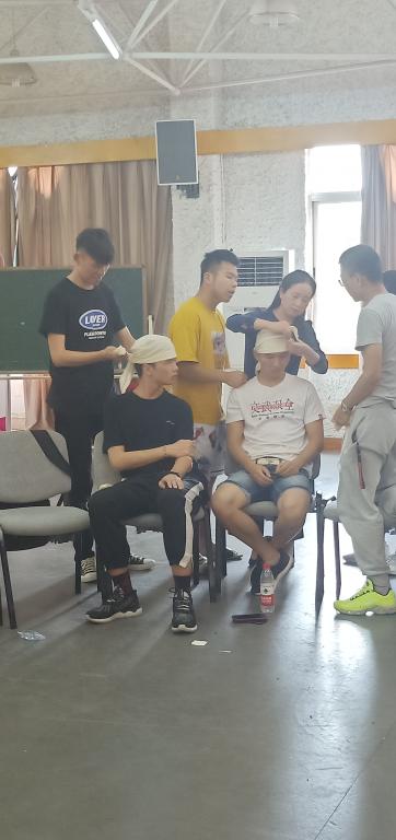 2019年5月26日早上为包扎课的理论课程和考核,下午是操作的培训和考核。培训学生认真听讲,仔细记笔记,顺利通过理论考核测试。下午操作课上,老师讲解手指压迫止血法、绷带包扎和三角巾包扎法,志愿者们积极尝试,包扎完后都让老师检查自己的包扎成效。考核的时候志愿者们都细心包扎,努力做到完美。虽然是仅仅一天半的急救培训,这不仅让参与者体会到急救的重要性,而且学习到很多实用性强的急救技能。