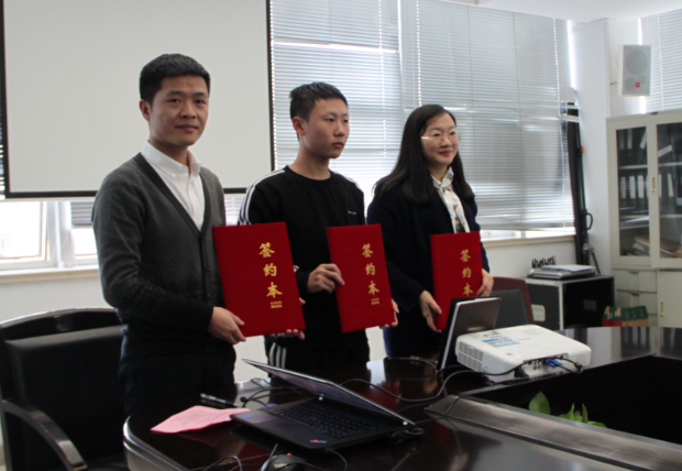 第五项议程,由浙江工贸职业技术学院数控技术专业主任郑秀丽老师作为校方代表,由浙江工贸职业技术学院数控技术1801班的吴叶辉同学作为学生代表,与温州长江汽车电子有限公司人力资源部科长龚鹏先生作为企业方代表共同签署了三方协议。
