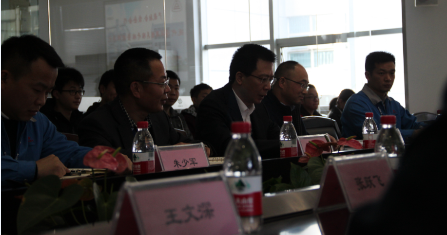 我校领导老师们与温州长江汽车电子有限公司诸毅总经理等领导在公司会议室进行了会面。会议有七项议程,首先,由温州长江汽车电子有限公司董事长兼总经理诸毅先生致辞。