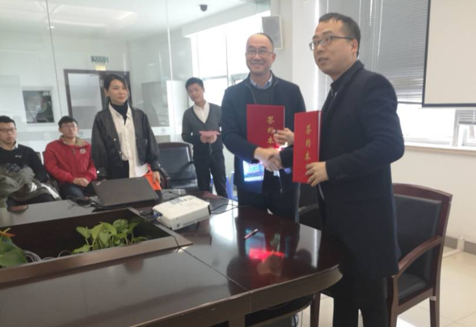 第三项议程,浙江工贸职业技术学院校企合作办主任、教务处副处长梅成才老师与温州长江汽车电子有限公司人力资源部经理冯锋先生签署了现代学徒制校企合作的框架协议。