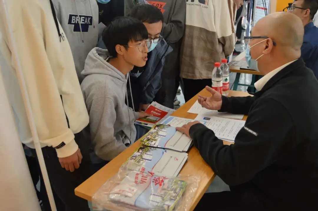 一切准备就绪,下午1点30分,招聘会正式开始。参会的学生们在志愿者的引导下到相应的企业前有序地排着队伍等待面试,同时也认真阅读企业的岗位设置、岗位要求、薪资待遇,与班级同学积极讨论。经过1个多小时的面对面交流,让学生对单位有了更深的了解。