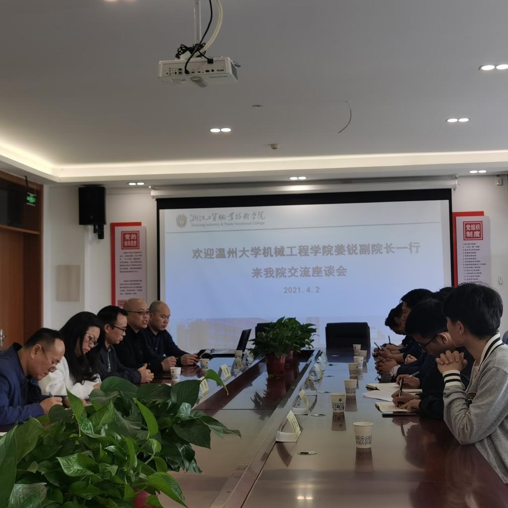 4月2日上午,温州大学机电工程学院副院长姜锐一行来到我校瓯江口校区参观交流,光电分院院长郑道友、实训中心主任姚锡钦等负责陪同接待并进行座谈交流。