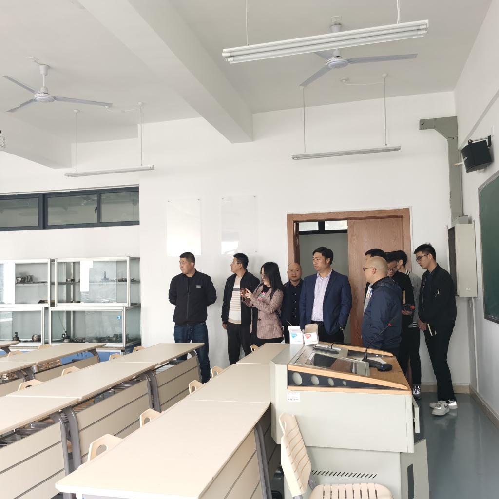 姜锐副院长表示感谢陪同接待,接着介绍了温大机电学院概况和专业设置情况。他讲到分院现有的机械工程和工业工程2个专业属于国家一流专业,转型适应地方发展需求,加大实验室建设管理是主方向。