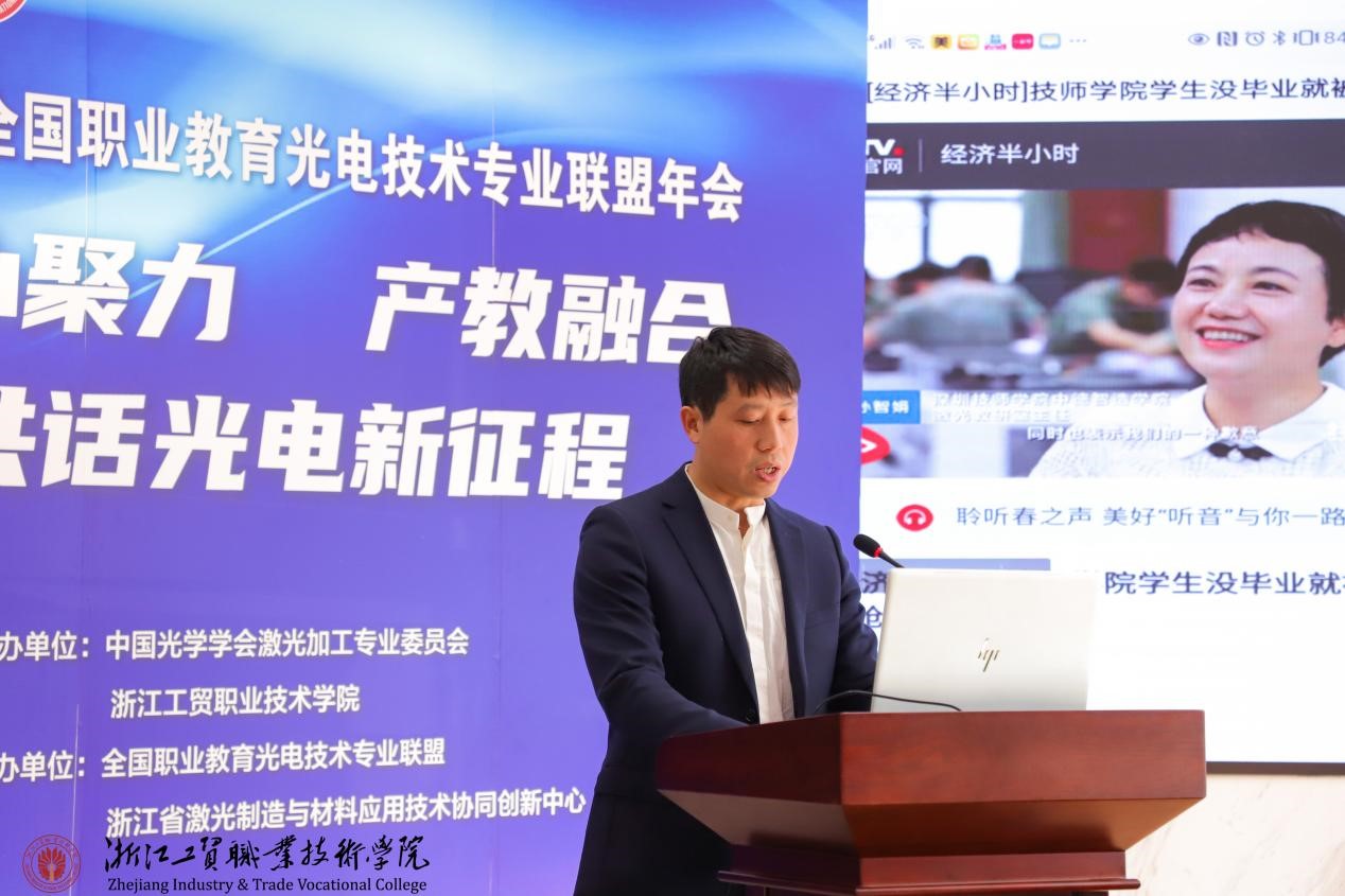联盟秘书长钟正根汇报了《2021年度联盟工作总结及2022年工作计划》。2021年,联盟被浙江省教育厅认定为2021年度职业院校产教融合联盟项目;进行了《激光设备安装调试员》国家新职业申报、研制了中高职专业教学标准、启动了一带一路金砖国家技能大赛、构建了光电技术专业联盟信息平台等。2022年联盟将围绕构建新时代校企创新共同体,推动校企产学研合作、服务产业发展、促进就业创业等方面开展工作。
