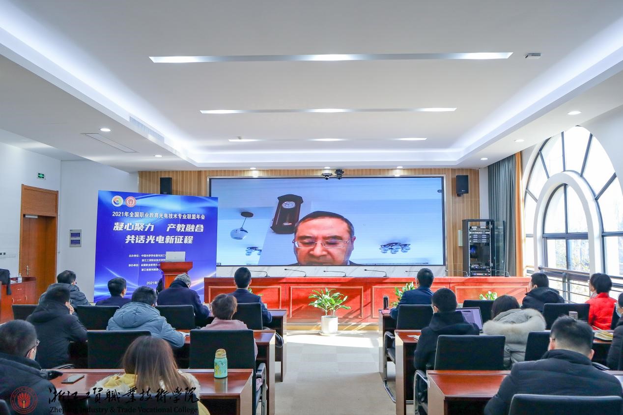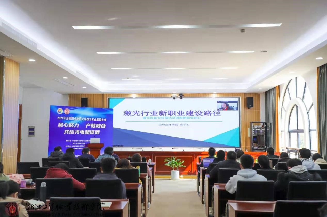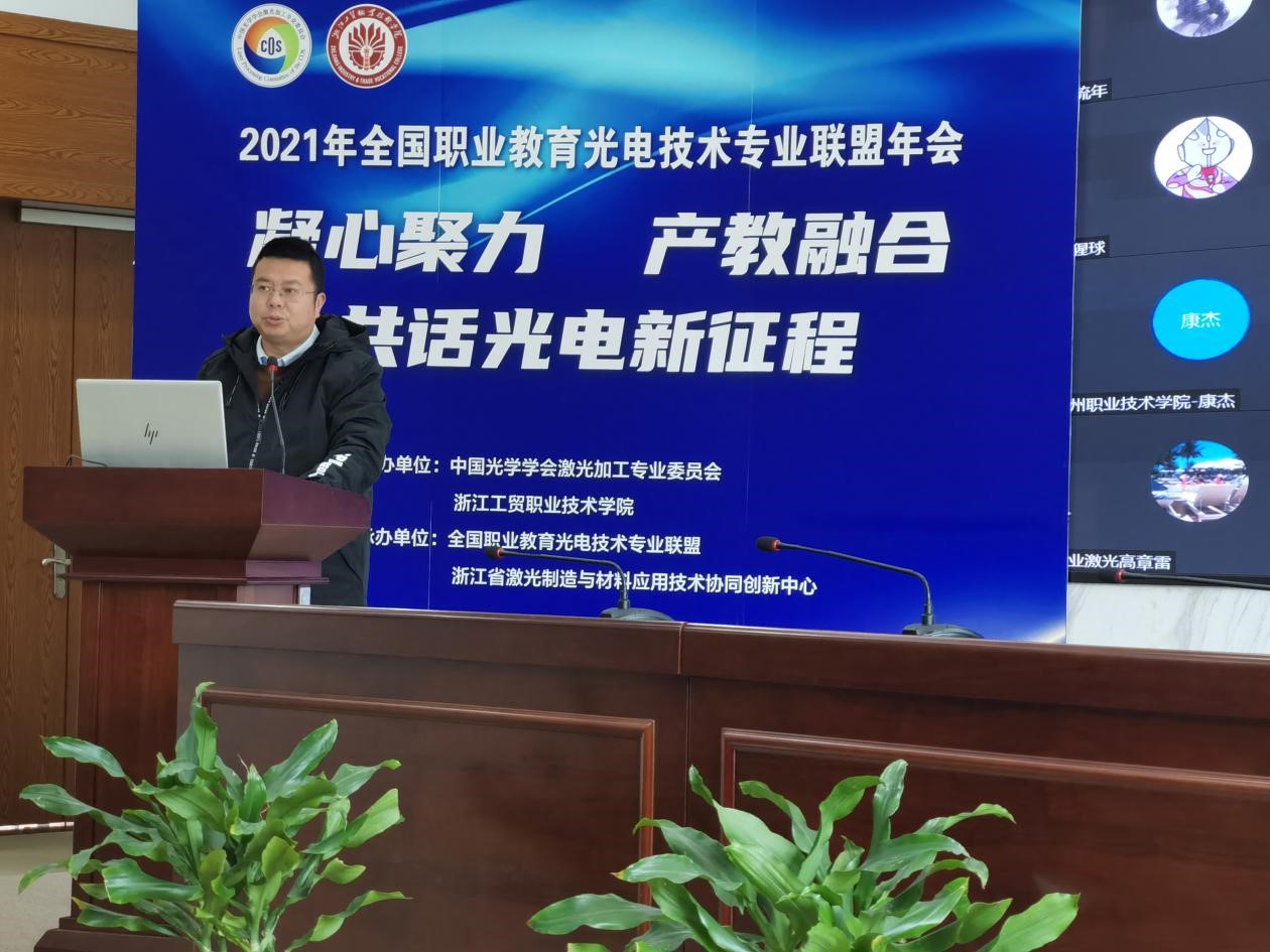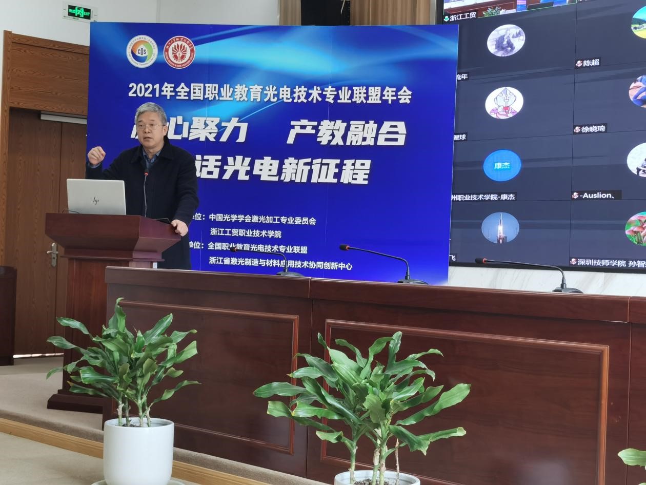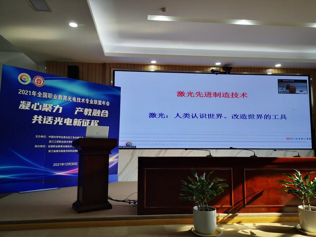 12月30日,2021年全国职业教育光电技术专业联盟年会在我校举行,本次会议由中国光学学会激光加工专委会和我院共同主办,全国职业教育光电技术专业联盟和浙江省激光制造与材料应用技术协同创新中心共同承办。会议采用线上线下相结合的方式举行,中国光学学会激光加工专业委员会副主任张庆茂教授、华中科技大学激光加工国家工程研究中心副主任唐霞辉教授、中国光学学会激光加工专业委员会激光加工专委会秘书长陈超、副秘书长刘善琨;温州市激光行业协会副会长、温州大学冯爱新教授;我校校长余闯教授、副校长张俊平教授、光电制造学院院长郑道友、科研处处长李丹、奔腾激光唐爱敏主任、奔腾激光李正部长、以及来自全国各地中高职院校、出版机构、研究院、企业等单位130多位代表通过线上线下方式参加会议。副校长张俊平教授主持了会议。