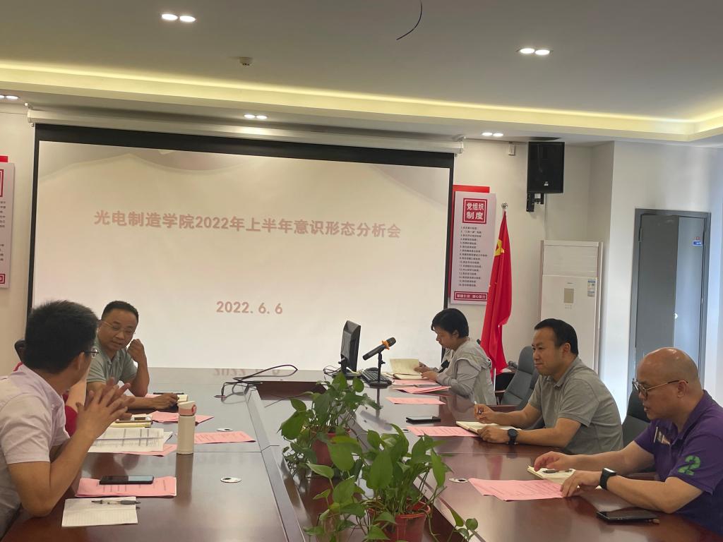 6月6日下午,光电制造学院党总支召开2022年上半年意识形态分析会,传达上级会议、文件精神,研究部署学院近半年来的意识形态重点工作。全体党总支委员参加,会议由党总支书记骆毅主持。