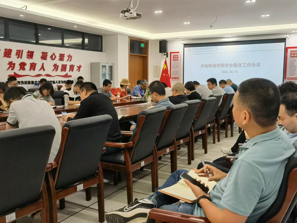 6月15日下午,光电制造学院召开安全稳定工作会议,全体班子成员、专业主任、骨干教师、行政科研人员参加。会议由党总支书记骆毅主持。