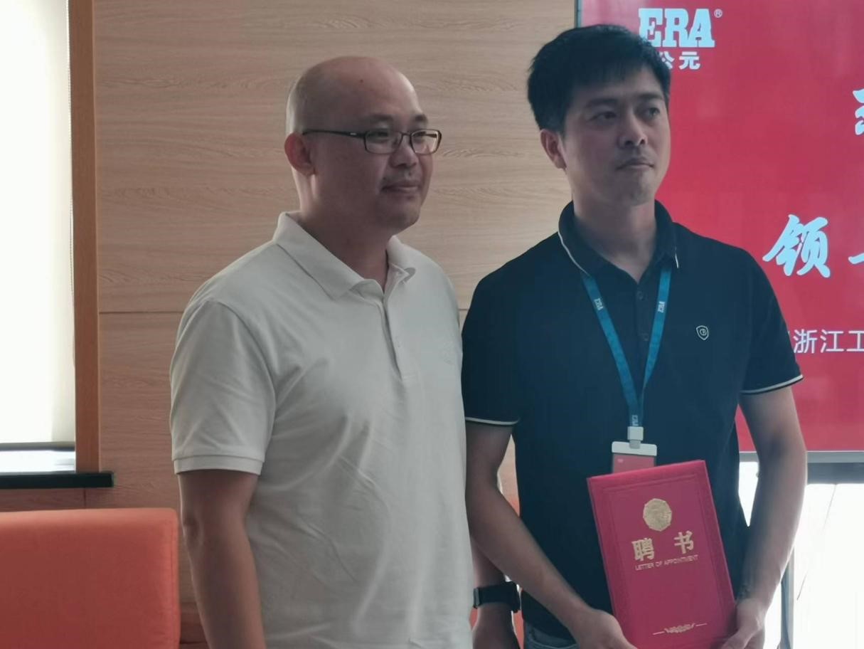 图3 郑院长向模具制造车间主任江挺颁发企业兼职教师聘书