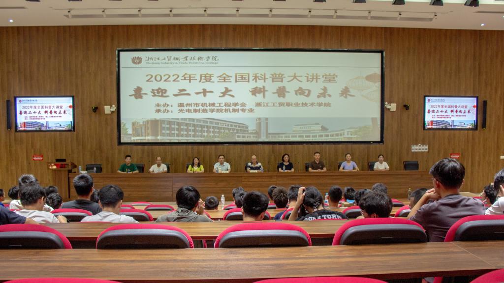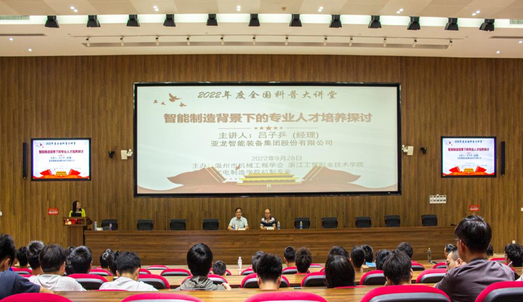 2022年9月28日,浙江工贸职业技术学院光电制造学院机械制造及自动化和数控技术专业开展了2022级新生始业教育,本次讲座是浙江工贸职业技术学院与温州市机械工程学会联合主办,出席讲座的嘉宾有温州市机械工程学会副理事长周章添、亚龙智能装备集团股份有限公司吕子乒经理、浙江工贸职业技术学院光电制造学院专业主任郑秀丽,还有机制和数控技术专业的专任教师与2022级机制和数控技术专业全体新生。