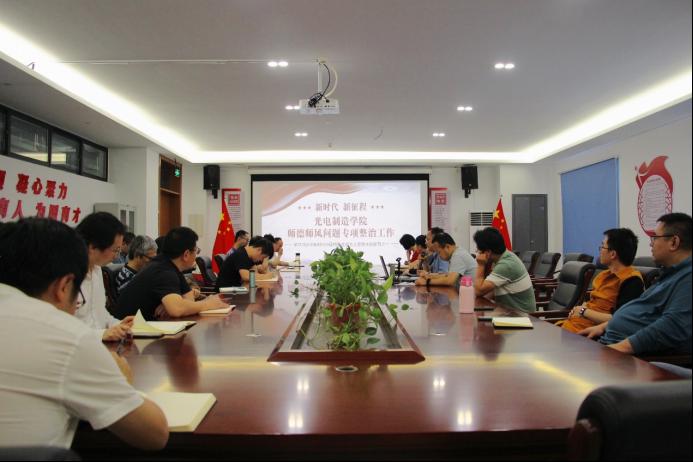 光电制造学院在主题教育期间,结合全省师德师风专项整治工作,开展“修师德、铸师魂、树师表”系列活动,将专题讲座、师生座谈、寝室走访、谈心谈话、专业辅导、学业就业帮扶等工作全面融入到师德师风建设之中,并再次修订教职工考核指标体系,制度化规范教师行为,激励教师更有担当、更有作为。