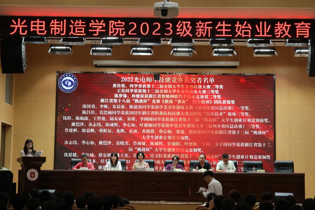 悄然凉意起,万物与夏光,共赴秋实之约。怀着共同的理想与追求,带着对新学期的无限憧憬与希望,浙江工贸职业技术学院光电制造学院迎来了2023级新生。为教育和引导新生尽快适应大学生活、确立人生目标、明确学习目的,接力秉承“精工诚贸,大气致远”校训精神,2023年9月18日下午,光电制造学院召开了“青春正当时,逐梦新时代”——光电制造学院2023级新生始业教育大会暨“开学第一课”。学院班子成员、辅导员、新生班主任和全体新生通过线上线下结合的方式参加活动,本次大会由光电制造学院党总支副书记秦佳主持。