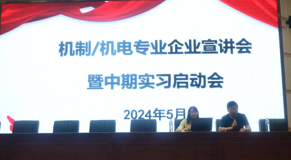 2024年5月24日,在咨询楼报告厅,机制机电专业企业宣讲会暨中期实习启动会如期举行。参会人员有机电专业主任王文深老师和机制专业主任郑秀丽老师,还有机制机电专业相关骨干老师和班主任都参会。本次盛会旨在积极响应国家政策,为我校学子提供与企业代表近距离交流的机会,共同探讨行业发展趋势,助力学生更好地融入职场,不仅是对国家政策积极响应的体现,更是校企合作共谋发展的生动写照。