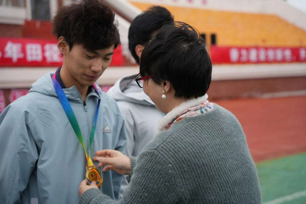 由秦佳老师和周全老师亲自为本次运动项目中表现卓越的光电运动员们带上奖牌,共同见证他们的辉煌成就与辛勤付出的回报。
