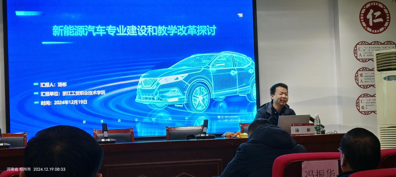 12月19日,浙江工贸职业技术学院光电制造学院汽车检测与维修专业主任汤彬受邀参加了2024年河南省技工院校新能源汽车专业培训班,并在会上作了题为“新能源汽车专业建设与教学改革”的专题报告。汤老师的报告中,首先介绍了新能源汽车产业的发展现状、趋势和人才需求等,指出新能源汽车产业正处于快速发展阶段,并就新能源汽车专业的开设情况、在校生规模和毕业学生的就业情况进行了分享,最后就新能源汽车专业建设方面的实践经验,详细阐述了专业建设的关键要素和改革方向。在报告中,汤老师还分享了浙江工贸职业技术学院在新能源汽车技术专业教学改革中的具体做法和取得的成效。