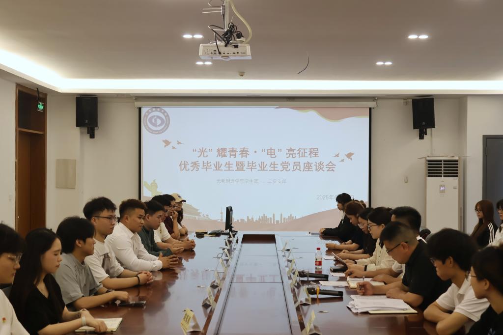 为深入贯彻落实党的教育方针,深化育人成效、凝聚发展合力,进一步做好毕业生思想政治教育工作,引导毕业生党员与优秀毕业生坚定理想信念、勇担时代使命,2025年6月13日13时,光电制造学院于光电B517召开2025届优秀毕业生暨毕业生党员座谈会。学院党总支书记李晓星、学工办主任鲍怡蒙、辅导员周钰涛、张欣怡老师、优秀毕业生代表、毕业生党员代表和在校生代表参加,会议由学工办主任鲍怡蒙老师主持。