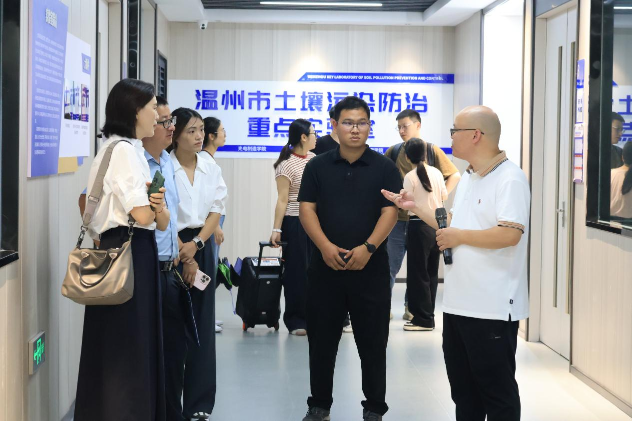 郑晓杰院长一行实地参观了智能制造产教融合实训基地、奔腾激光产教融合示范实训基地、温州市土壤污染防治重点实验室等,详细了解我院在实训室建设、人才培养模式创新、服务温州“5+5+N”产业布局以及推动教科人一体化发展等方面的具体措施与成效。