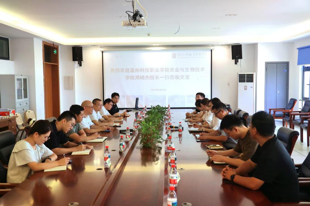 9月26日,温州科技职业学院农业与生物技术学院郑晓杰院长一行莅临光电制造学院开展调研交流。光电制造学院院长郑道友、教务处(双高办)副处长毛海舟等热情接待了来访嘉宾。
