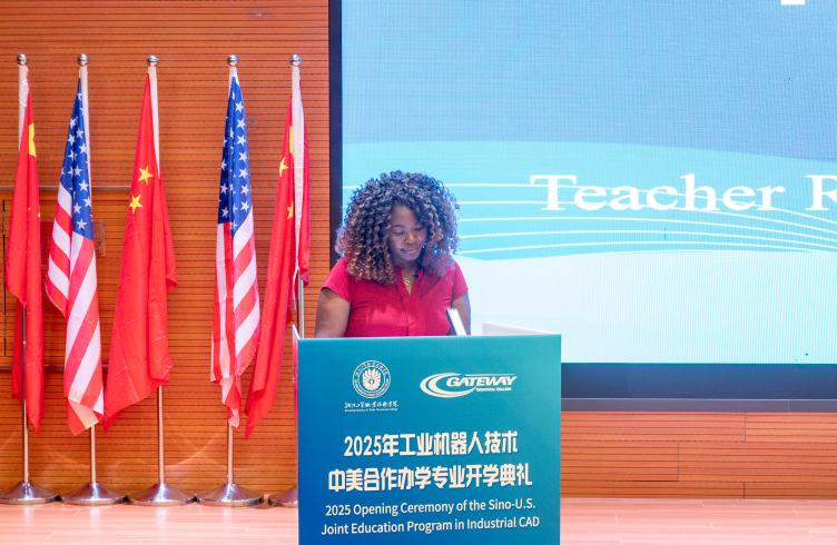 然后,由美国盖特威技术学院Demeetrise Trishele Ford副校长致辞。Ford女士肯定了中美合作办学项目在课程体系、师资力量与国际认证方面的独特优势,凸显了“技术+人文”双核驱动的培养理念。