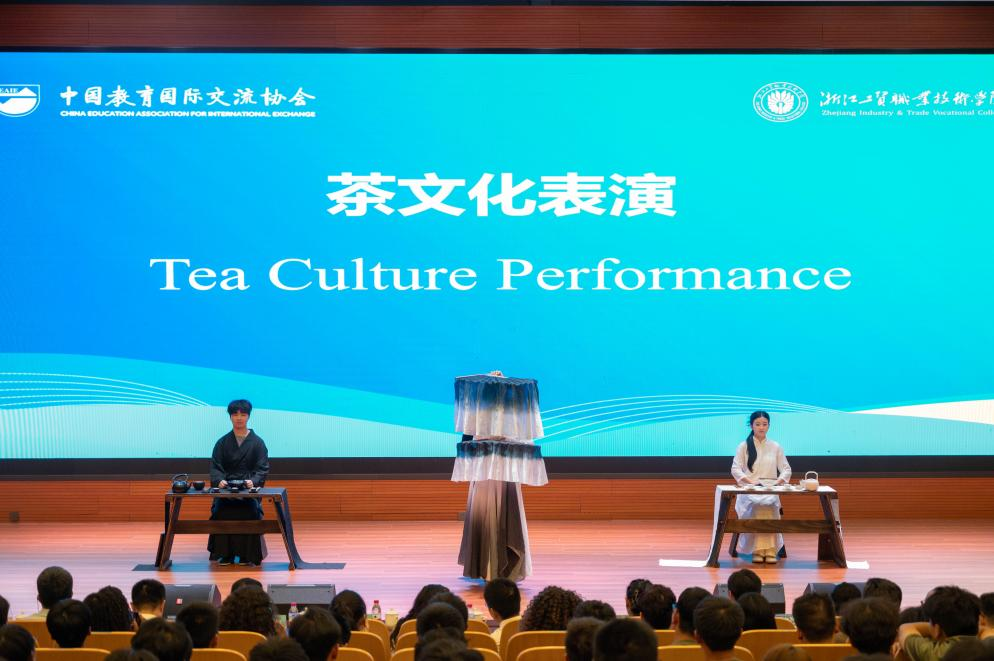 浙工贸光电制造学院2024级和2025级学生代表发言。两位学生代表分别分享了自己在中美合作办学项目中的学习感悟和对大学生活的期待。新生代表在发言中表达了对专业的憧憬与决心,引用“报国寸心坚似铁”的誓言,彰显了新时代青年投身智能制造的责任感。典礼期间还有精彩的学生文艺表演。