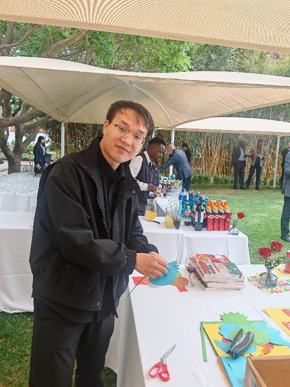 2025年9月25日,中国驻南非大使馆在南非行政首都比勒陀利亚隆重举办庆祝中华人民共和国成立76周年招待会。浙江工贸职业技术学院光电制造学院金明磊老师代表南中数字技术学院协助南非中国文化和国际教育交流中心孔子课堂团队以纸艺创作、传统技艺展演等多元文化活动搭建交流桥梁,成为现场传递中华文化魅力、深化中南情谊的重要力量。