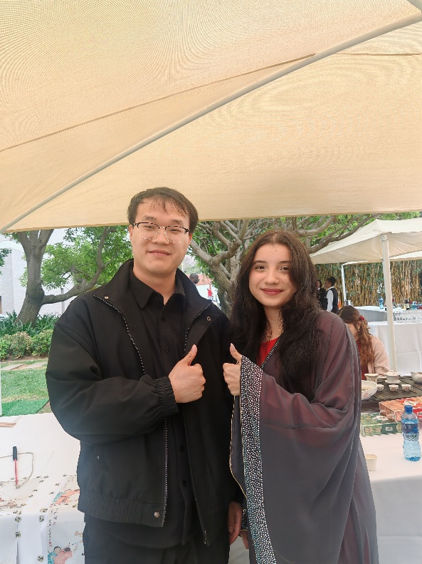 在互动区,金明磊协助孔子课堂教师指导南非嘉宾体验抖空竹。吸引大批嘉宾驻足。现场掌声与喝彩声此起彼伏,成为展现传统杂技魅力的生动场景。增强了中华传统技艺的体验感与传播力,体现了学校“以技促融”的教育理念。