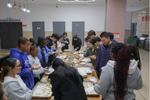海川楼内暖意氤氲。中外学子围着桌子,指尖翻飞间,一场关于饺子与文化的对话悄然展开。留学生们学得专注——有人仔细捏出圆鼓鼓的“元宝”,有人灵巧折出弯弯的“月牙”。欢笑声、交谈声和碗碟的轻响相互交织,仿佛冬日里一支温暖的协奏曲。