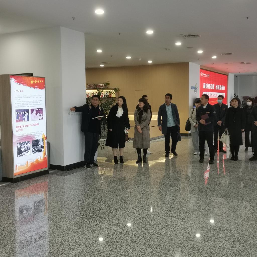 一行人首先参观了温州理工学院瓯江红党群服务中心,听取讲解员介绍,观看红色教育图片展,深入了解温理工党建工作的做法和成效,试用温理工党员管理系统和志愿服务平台。