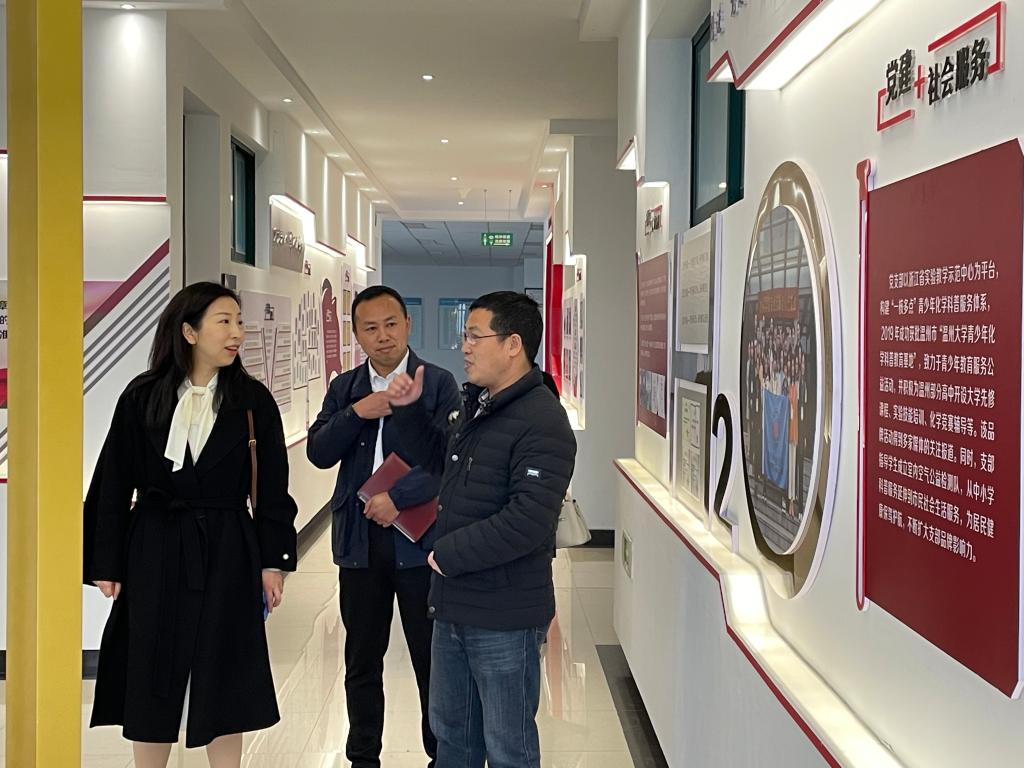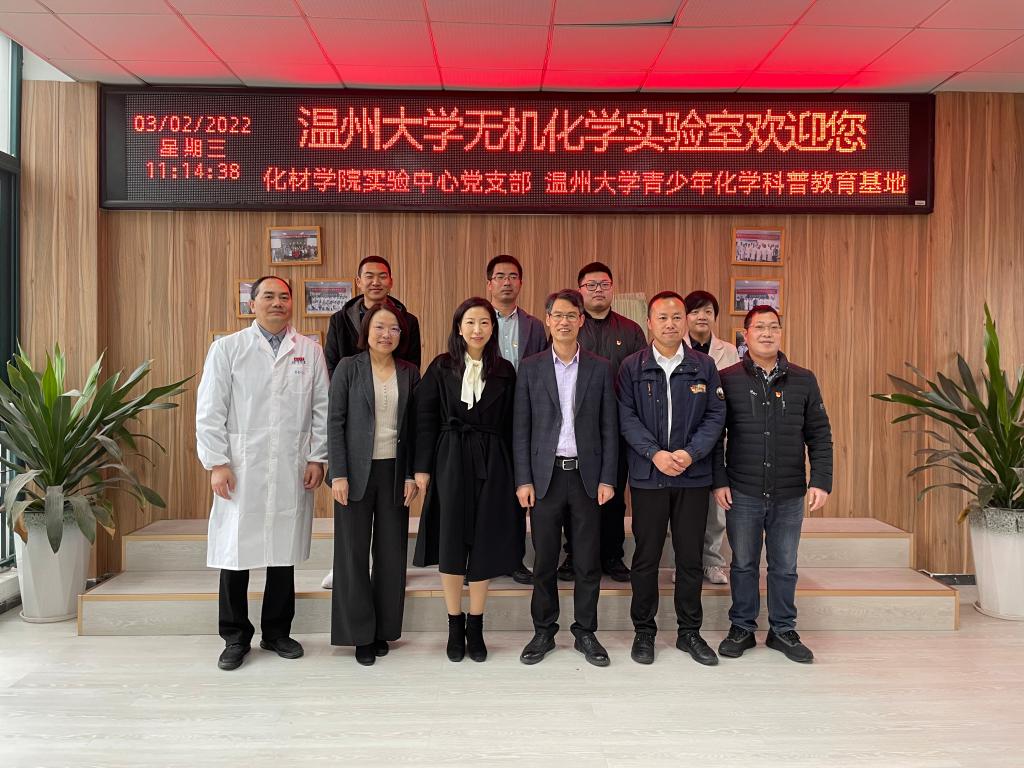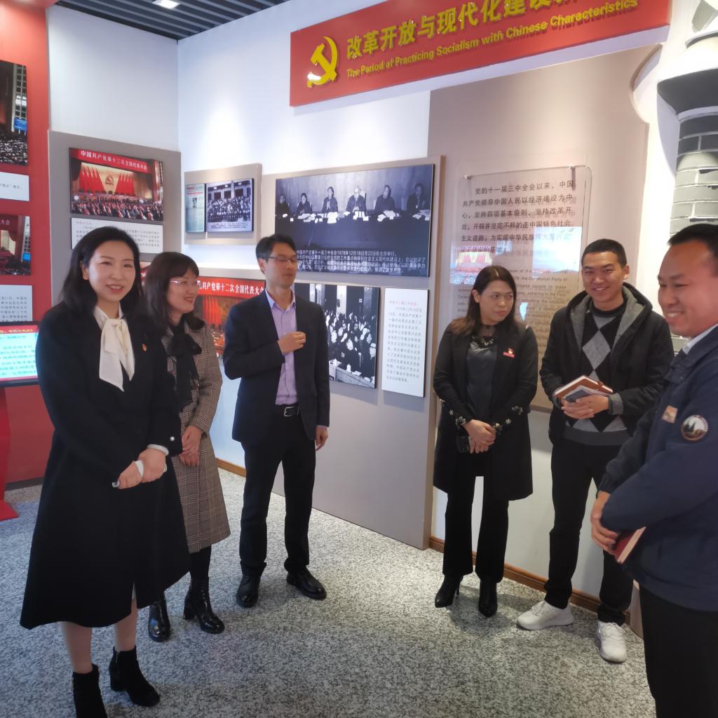 随后,一行人来到温州大学化学与材料工程学院,走访第一批全国党建工作样板支部——化材学院实验中心党支部,在考察党建文化长廊建设的过程中,积极进行交流互动,大家对其在党建+自身建设、党建+人才培养、党建+社会服务等工作中取得的成绩、形成的品牌表示高度认可,同时,也介绍了光电专业群党支部的基本现状和发展思路。