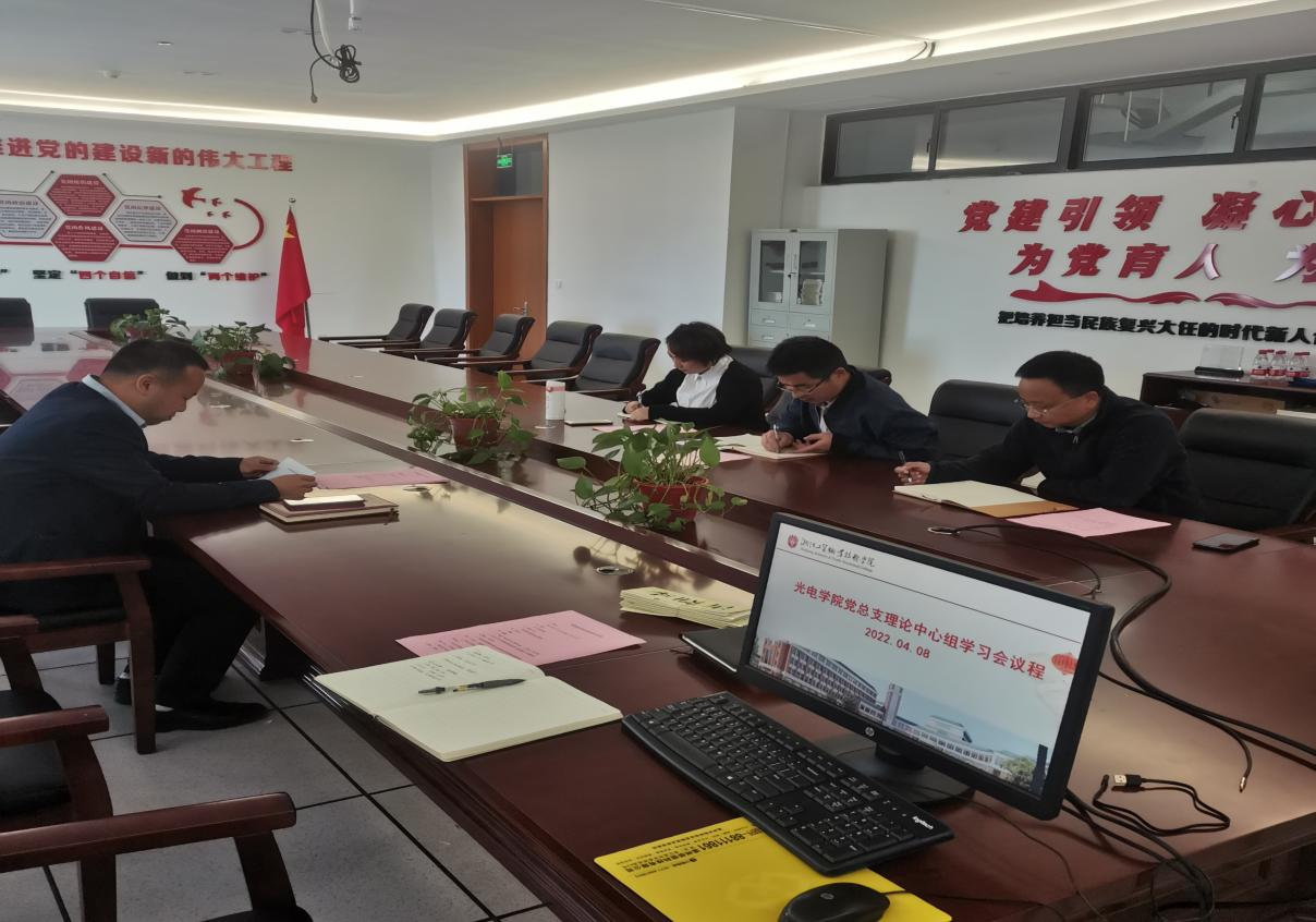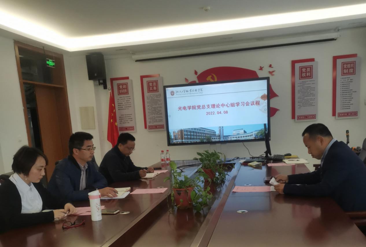 4月8日下午,光电制造学院党总支理论中心组在B517党员之家举行学习会,专题学习贯彻全国两会精神。班子成员参加会议,会议由光电分院党总支书记骆毅主持。